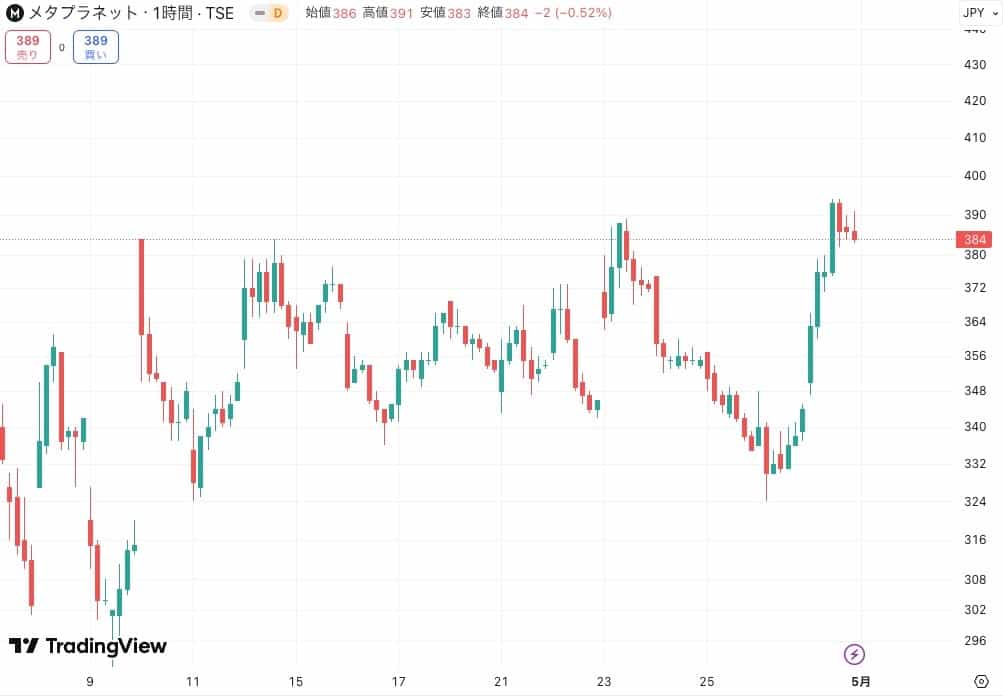 メタプラネット株価チャート1時間足(画像:Tradingview)