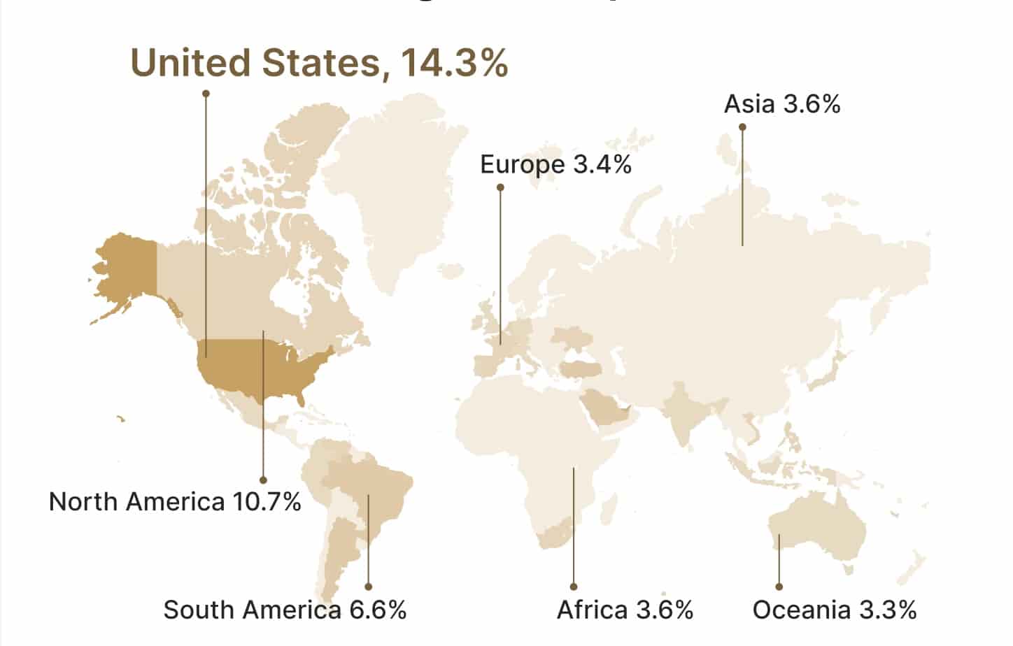 米国成人のビットコイン保有率は14.3%にのぼり、この普及度は欧州・オセアニア・アジアの合計をも上回っていることが示されています。