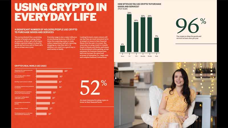 支払いに仮想通貨を用いる頻度は様々ですが、その利用者のほぼ全員(96%)が年に1回以上仮想通貨決済を行っており、約9%は日常的に毎日仮想通貨を使って支払いをしていると報告されています。
