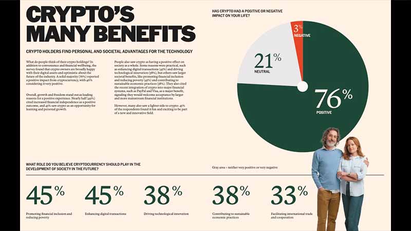 - 76%が仮想通貨に対して肯定的な影響を実感