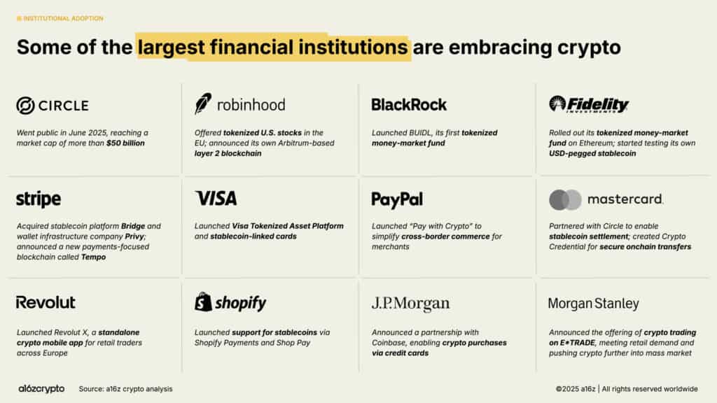 この成長と制度整備の流れを踏まえ、a16zレポートが示すように、2025年は単なる価格高騰の年ではなく、仮想通貨がグローバル経済に深く根付く節目となる可能性があります。