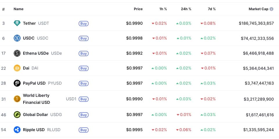 CoinMarketCapの画像ステーブルコインのランキング(画像:CoinMarketCap