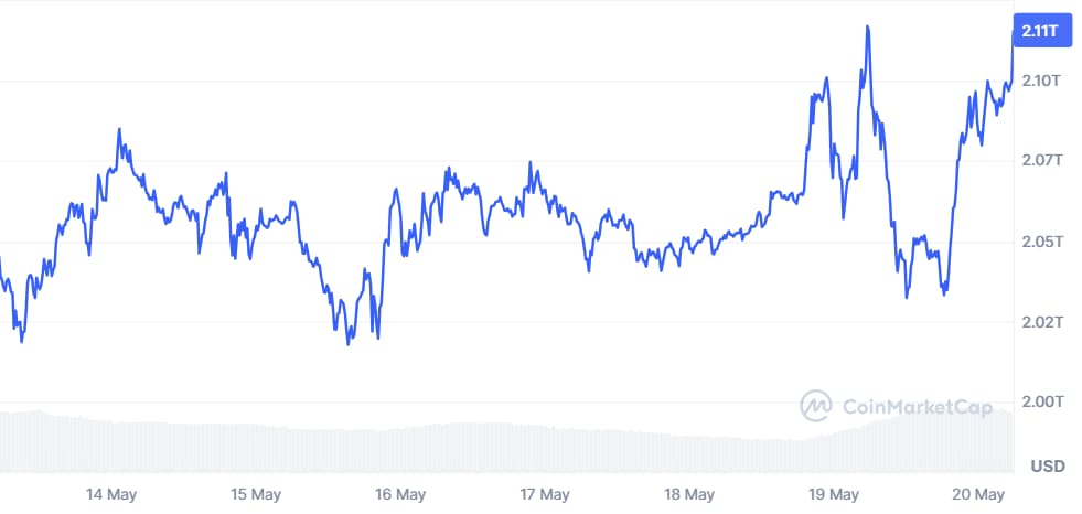 ブロックチェーンネットワークの始まりであり最大の規模を誇るビットコインは、時価総額は初めて2.12兆ドルに到達し時価総額が新たなマイルストーンを達成した。これで BTC は、時価総額2.022兆ドルのGoogleや1.6 兆ドルのMetaといった世界の大手企業を追い抜いた。