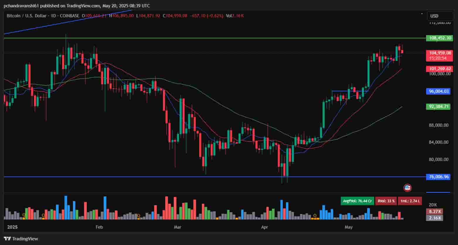 2025年5月21日現在、ビットコインの取引価格は約107,844ドル。250,000ドルまで上昇するには、市場に大きな勢いが必要となるが、現在の傾向と専門家の分析からは、その可能性は十分にあると考えられている。