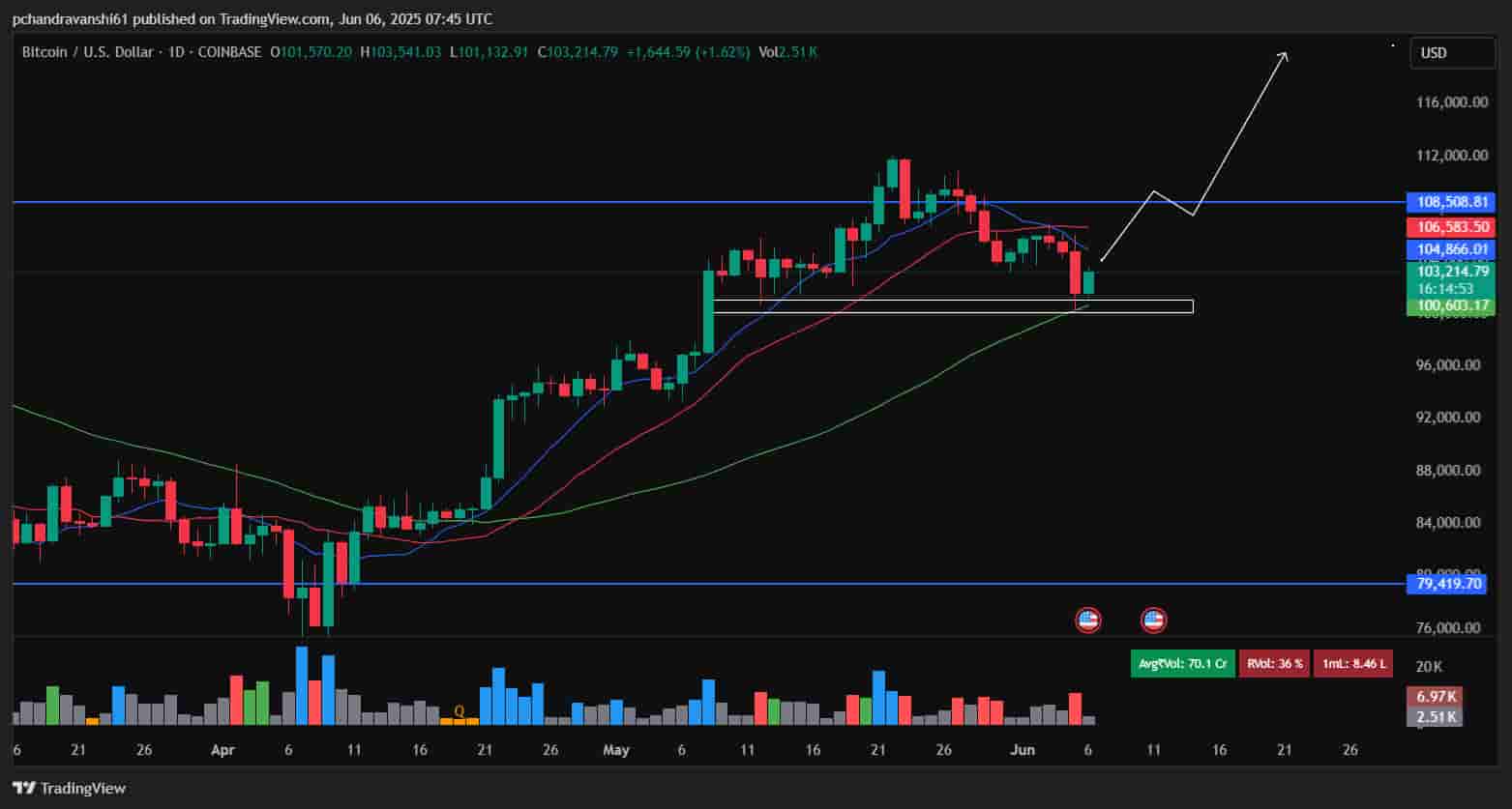 - ビットコインは10万ドルのサポートゾーンから力強く反発し、50日移動平均を上回って安定しています。アナリストたちは、ビットコインは6月中に11万5000ドルを突破する可能性があると考えています。