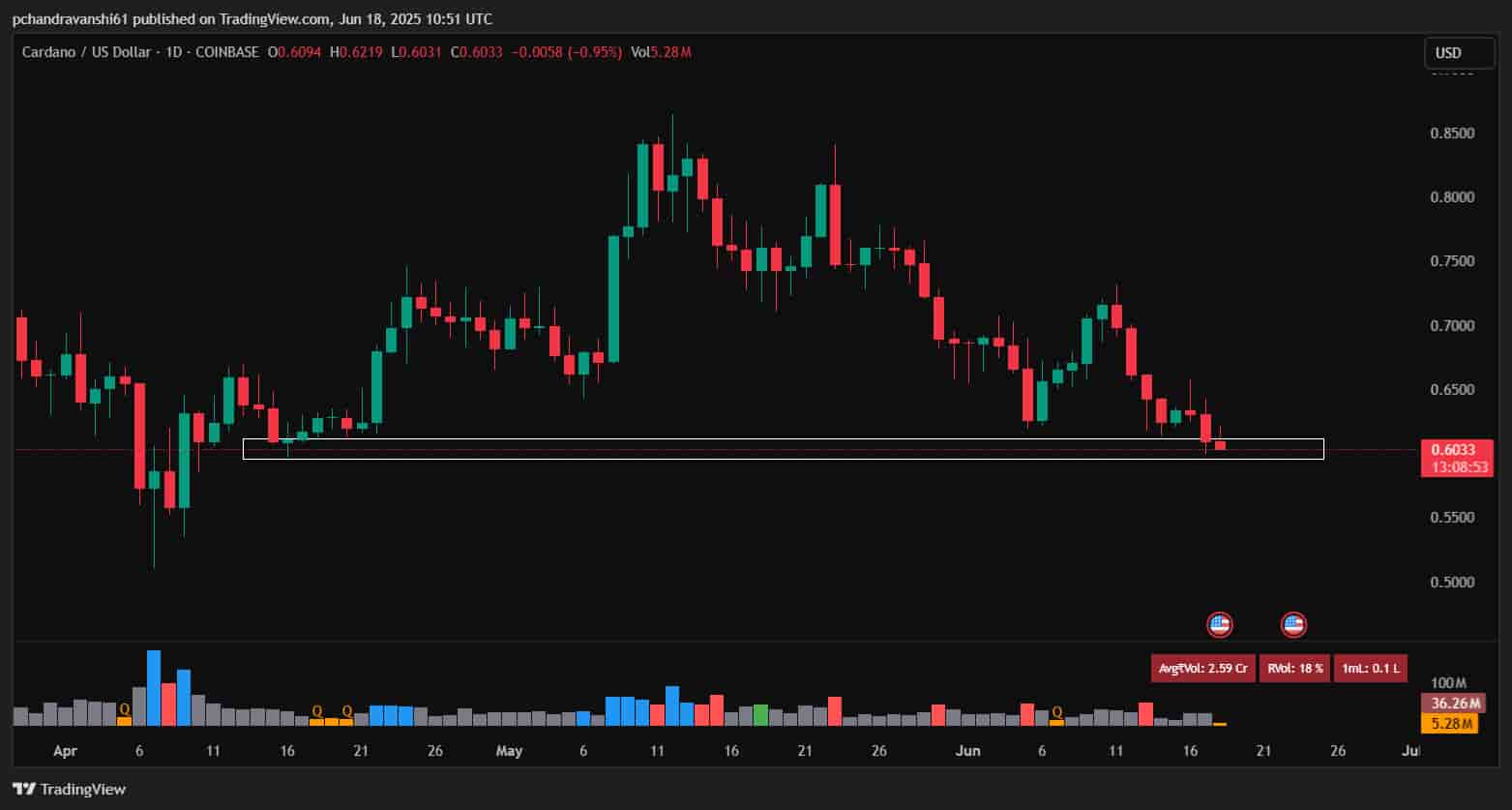 カルダノの価格は、4月のブレイクアウト後、再び0.60ドルのサポートレベルに達しました。この ADA のニュースは、価格の動きが次のトレンドを決定する可能性があるため、投資家に不安をもたらしています。