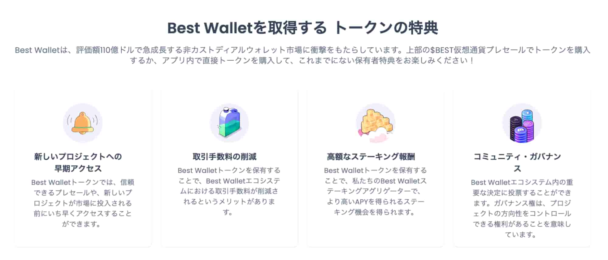 Best Walletのもう1つの強みとして、ウォレットとしては珍しく独自トークン($BEST)を発行していることがあげられます。